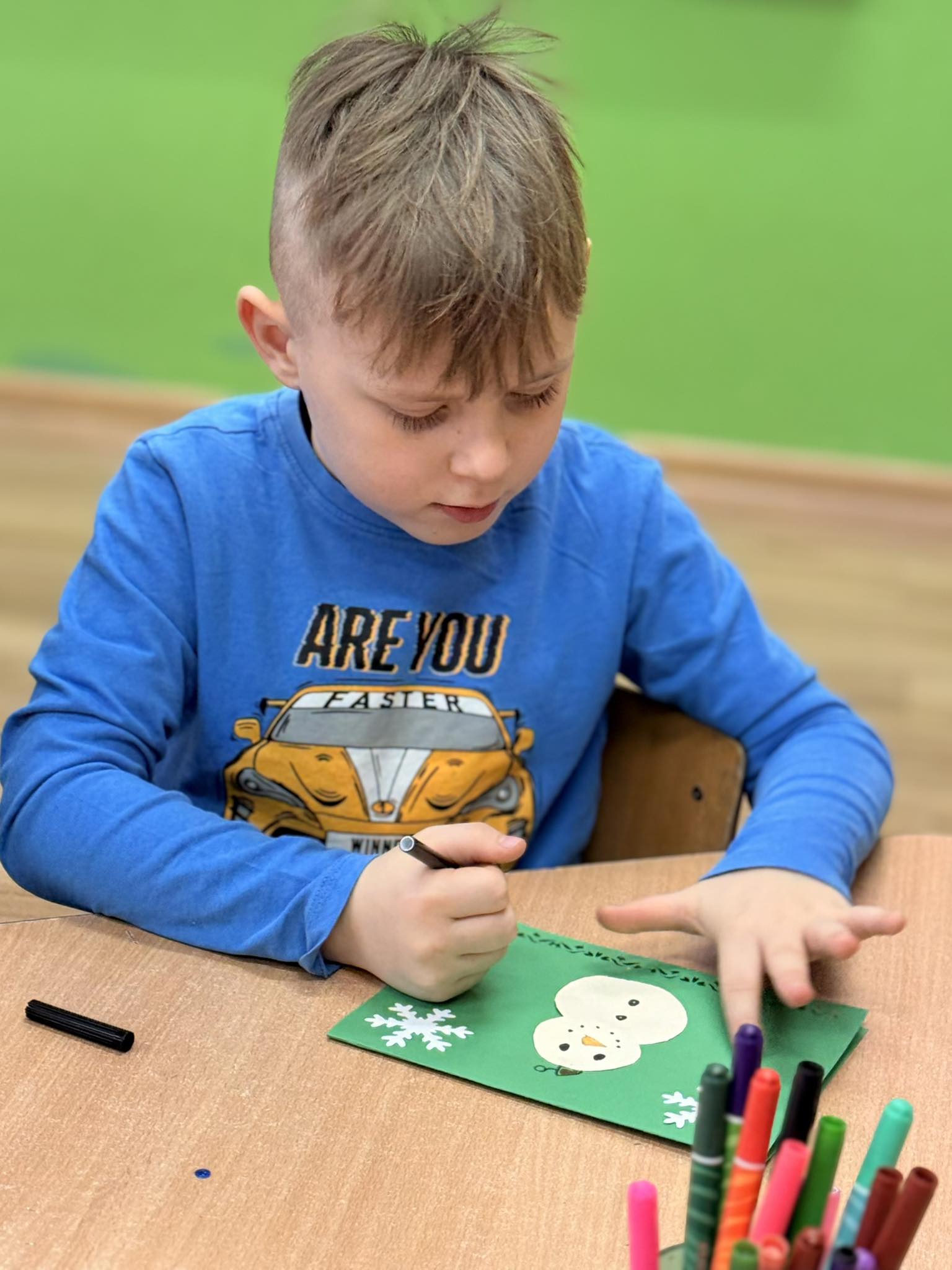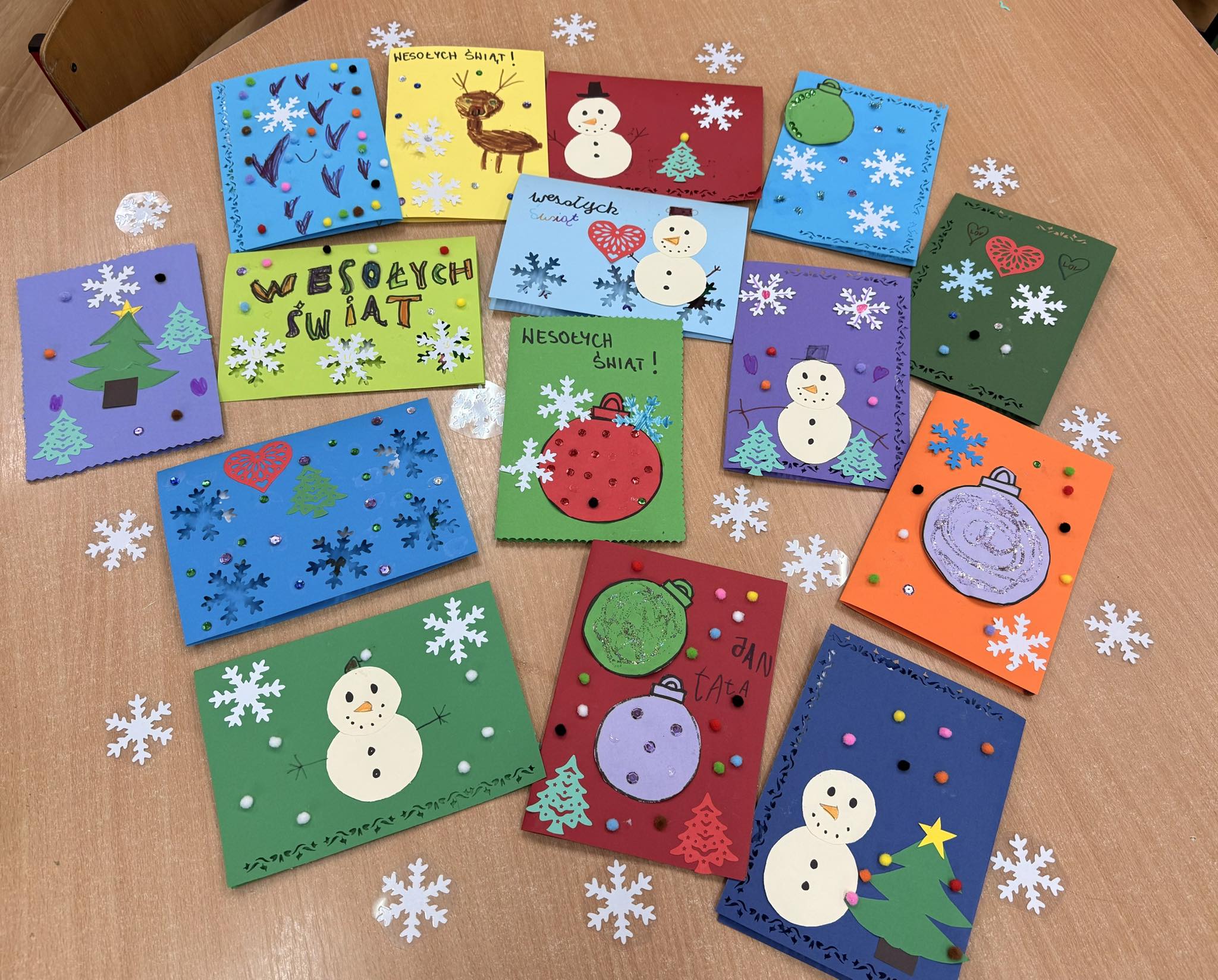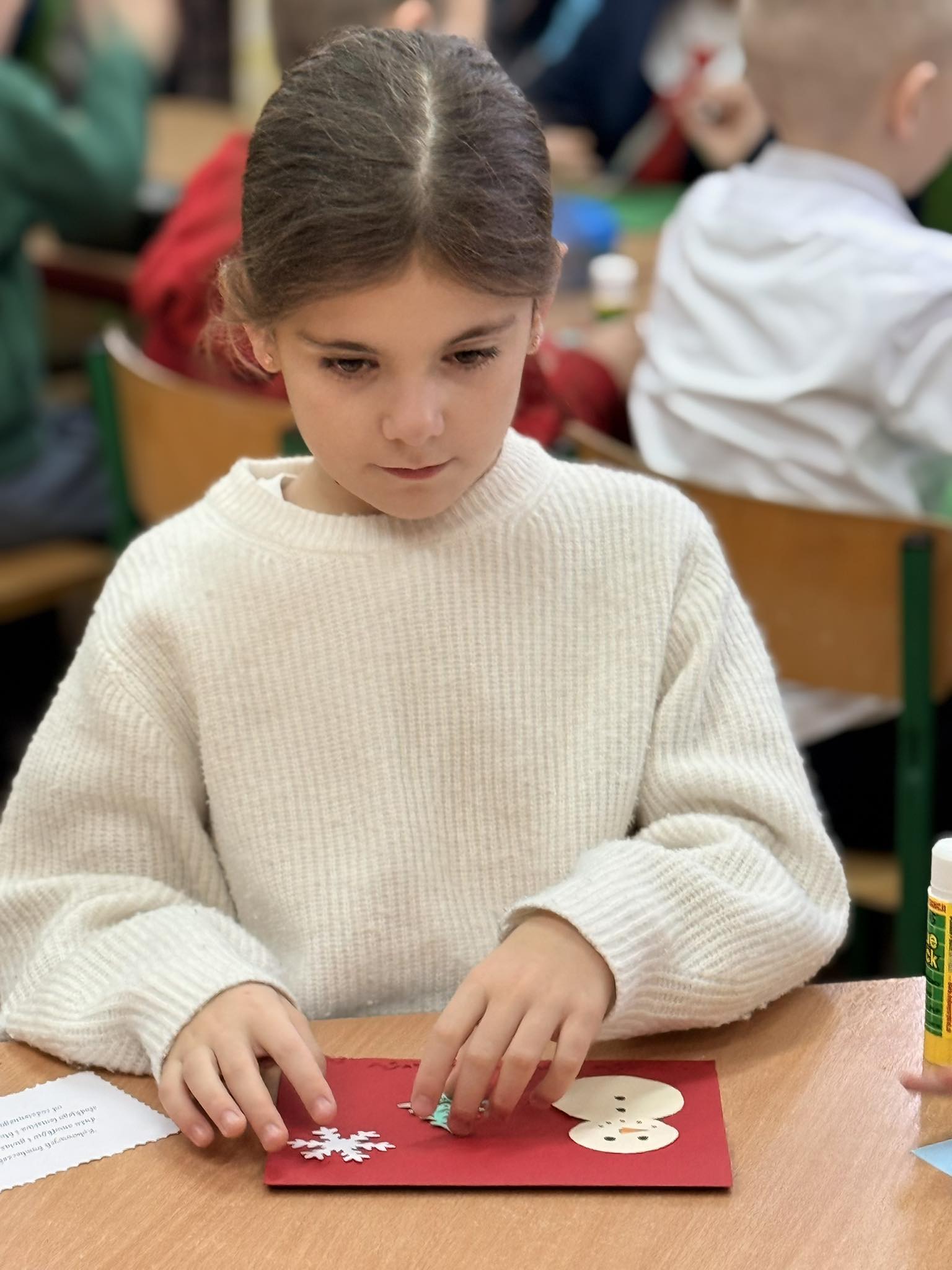 Dzieci z wielkim zaangażowaniem tworzyły kartki świąteczne, które na pewno wywołają uśmiech na twarzach obdarowanych nimi bliskich.😊