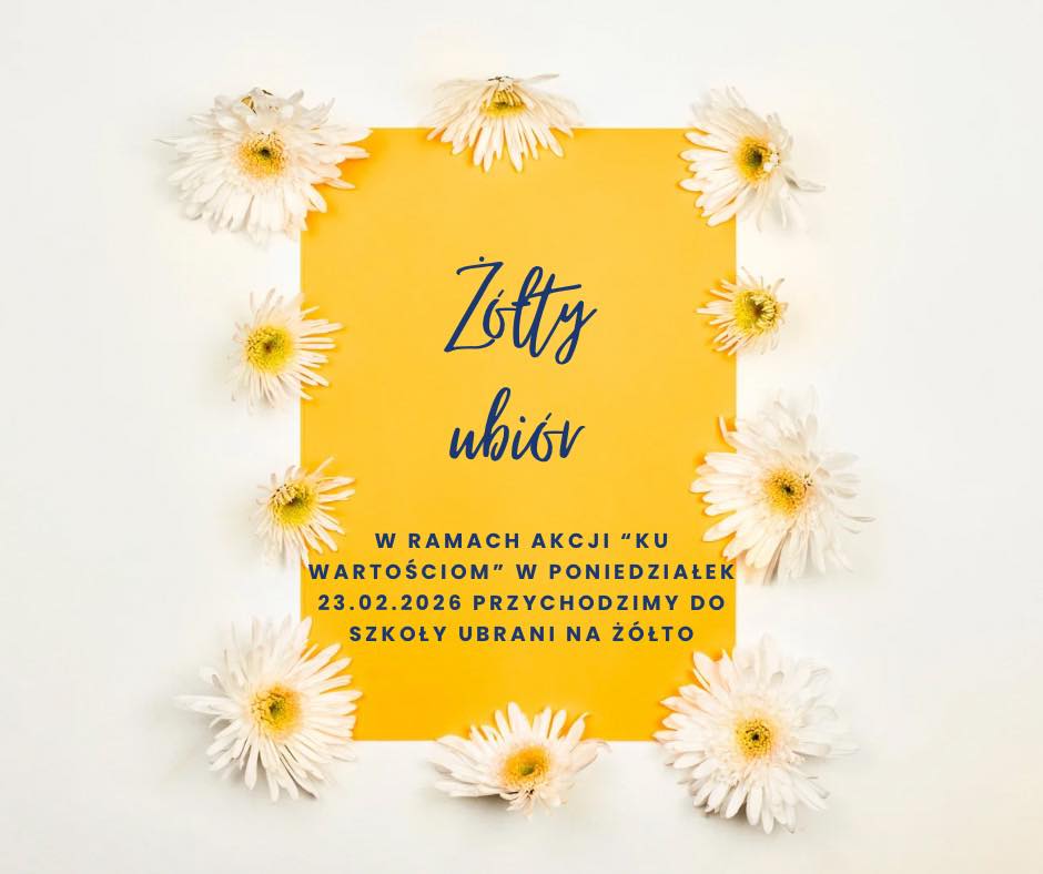 „Ku wartościom” 21 lutego 202621 lutego 2026 Admin: Katarzyna Kuhn W ramach Dnia Walki z Depresją w poniedziałek ubieramy się na żółto 🙂🙂🙂 (źródło: SP Łasin)