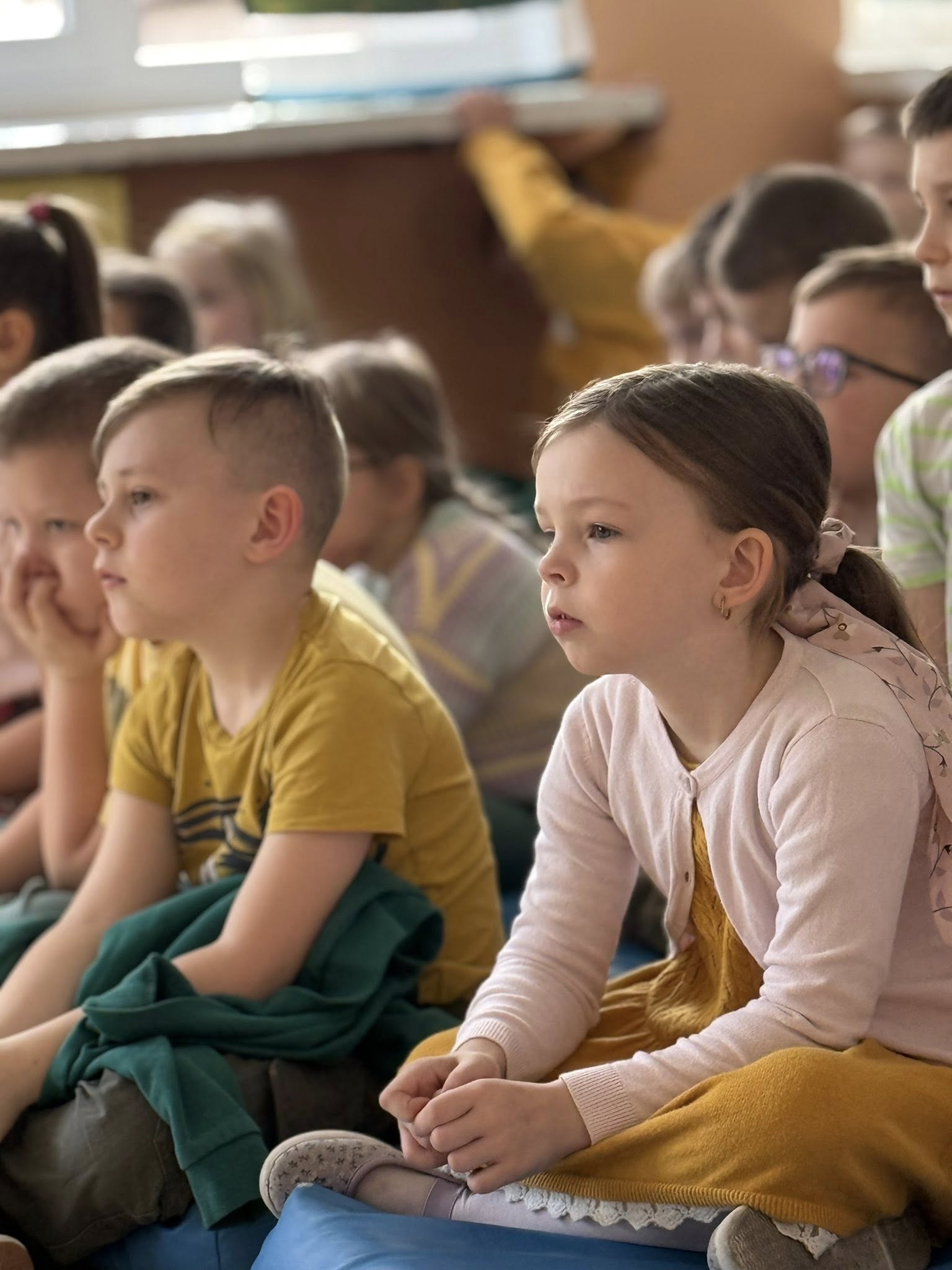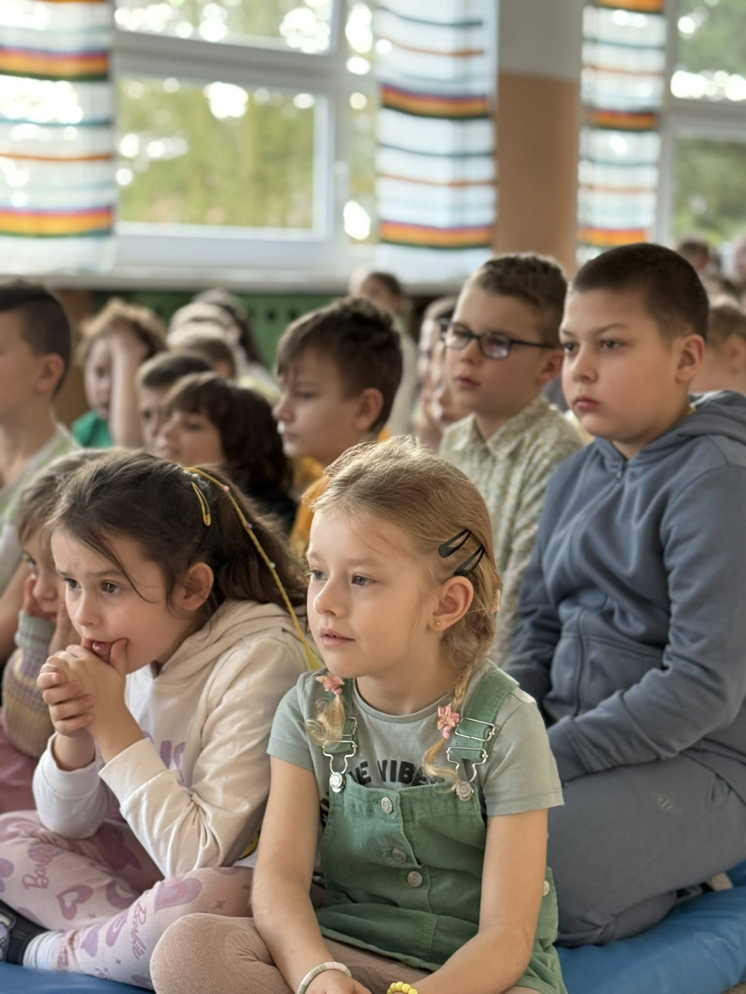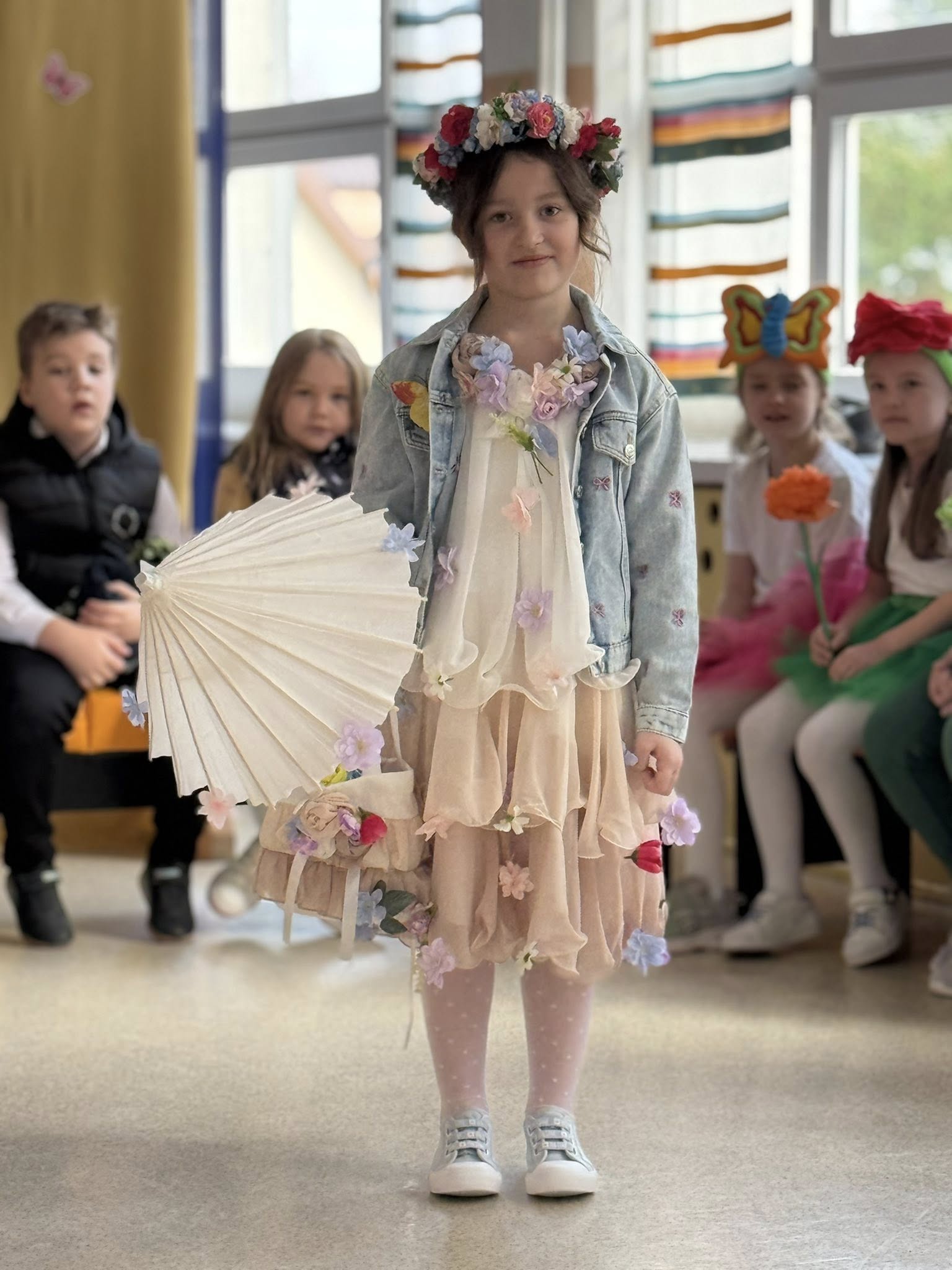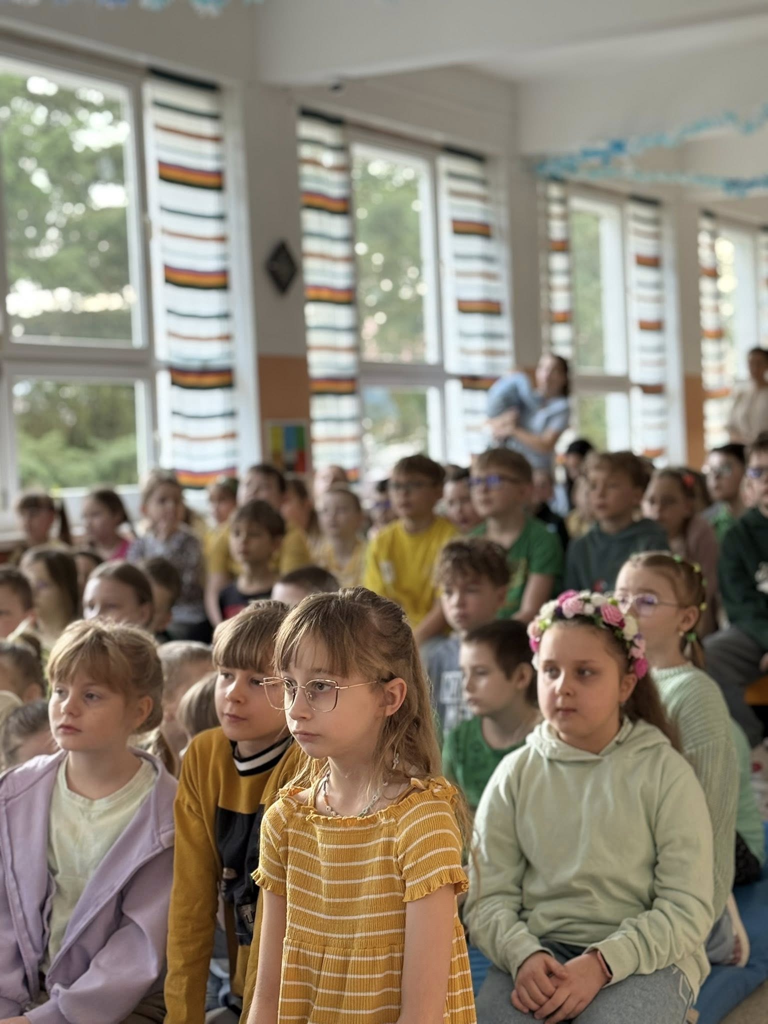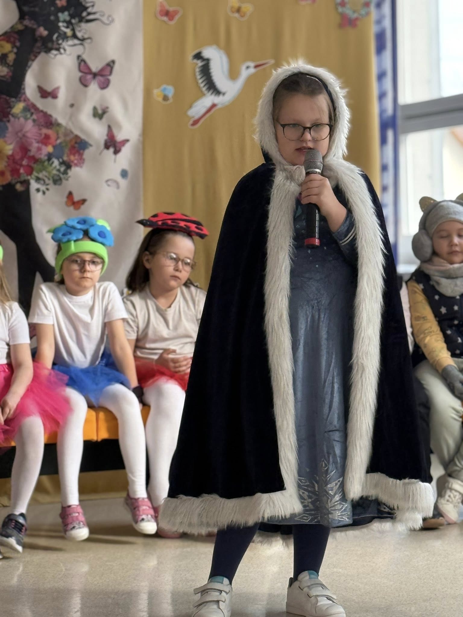 Dzisiejsze spotkanie należało do aktorów z klas pierwszych. Wspaniale zaprezentowali wiersze i piosenki żegnające zimę, a witające wiosnę. Kolorowe stroje, kwiatowe ozdoby i zielone kapelusze dodały wiosennego nastroju młodym aktorom.
